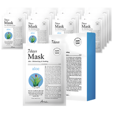 아리얼 세븐데이즈 알로에 H 진정 보습 마스크 팩, 1개입, 20개